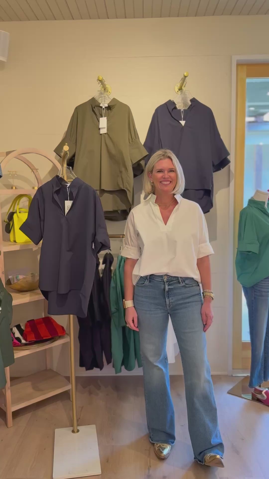 Our chic and effortlessly stylish Pullover Cotton Shirt. Inspired by a laid-back yet refined vibe, this shirt is designed to seamlessly complement your favorite denim jeans with its high low style perfect for a front tuck. Crafted with meticulous attention to detail, this pullover style features a modern twist with a short stand-up collar, exuding an air of sophistication while maintaining a casual flair. The longer short sleeves with buttons offer versatility, allowing you to wear them as is, open, or elegantly cuffed, depending on your mood and occasion.