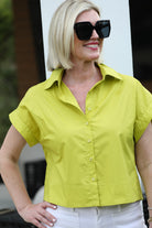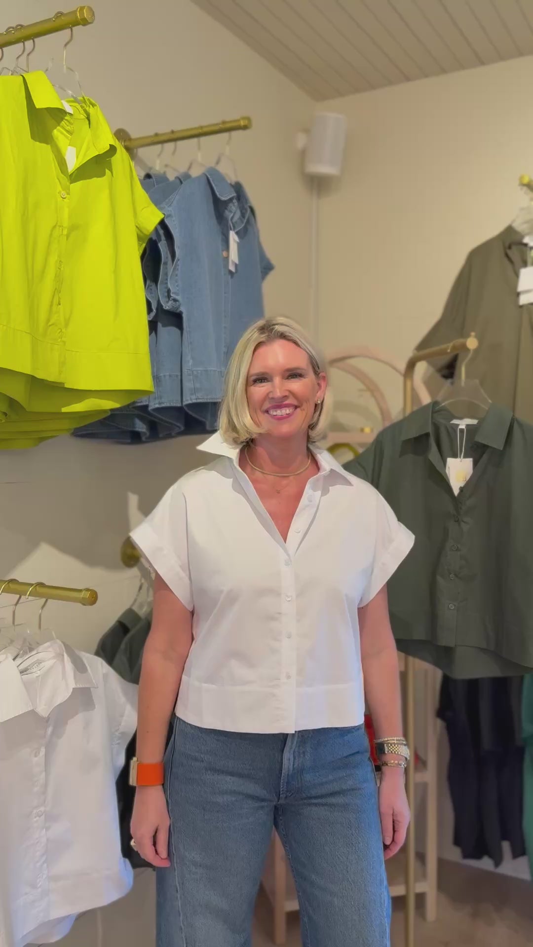 The Shorty Shirt—a polished, conservative crop that gives you the crisp, structured look you love with a fresh, modern twist. Designed to hit just right (no skin showing!), it’s the perfect blend of timeless elegance and effortless style. Made from our signature luxurious, high-quality fabric, this shirt pairs beautifully with high-waisted jeans, skirts, or tailored pants for a look that’s both sophisticated and on-trend.