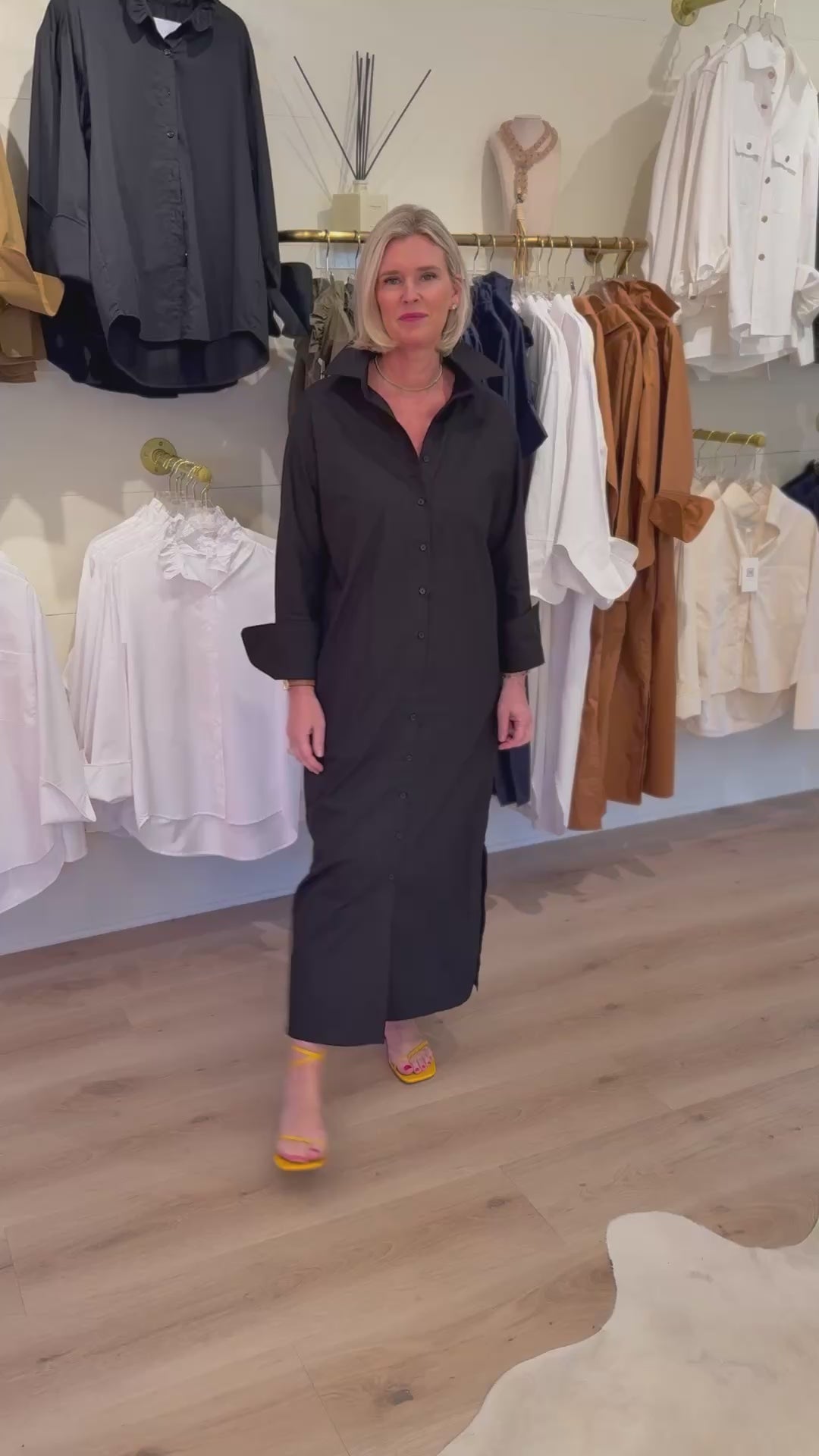 Sleek, versatile, and effortlessly chic — meet our Black Shirt Dress, the wardrobe staple you’ll wear on repeat. Designed in a long, streamlined silhouette with full-length sleeves, this button-up dress blends everyday ease with modern polish.